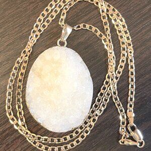 Bold & Beautiful White Druzy Pendant with 18K GP Chain