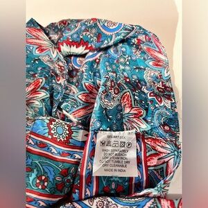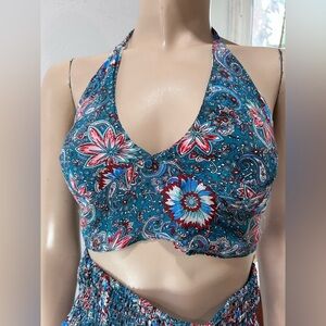 This set includes bold and beautiful silk pants and a top featuring a vibrant floral print. The elegant silk material adds a luxurious touch to the outfit, making it a stylish choice for women looking to make a statement. The floral pattern adds a feminine and chic element to the ensemble, perfect for dressing up any occasion with a touch of sophistication.