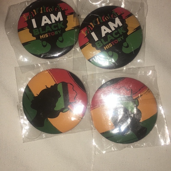 Set of four buttons with vibrant 'I Am Black History' design. Features dynamic red, green, yellow, and black colors.