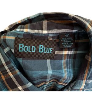 Bold Blue Short-Sleeve Blue Plaid Button Down Shirt, XL, Pre-owned