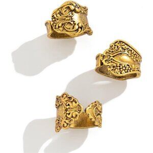 โจ Bold Boho Spoon Ring Set | Chunky Gold Adjustable Rings | Vintage Floral