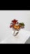 The primary stones are a deep red, a vibrant orange/amber, and an olive green color, which are common gemstone colors like garnet, citrine, and peridot. Smaller clear or white accent stones, cubic zirconia, are also set around the larger gems.