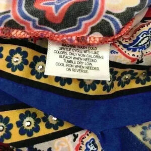 Fun, flirty bold sundress with silver stud embellishment on front neck/chest area. Back is mirror image of front.