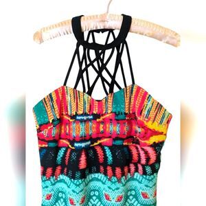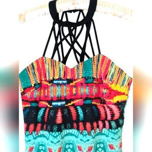 Bold Colored Tribal-Print Criss-Cross Halter Dress Size M (NWOT)