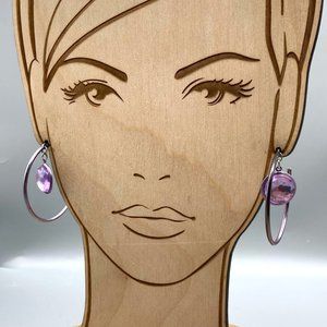 Bold Earrings Purple Hoops with Bright Crystal Dangle, Vintage Flash and Flair in Pastel Lavender