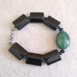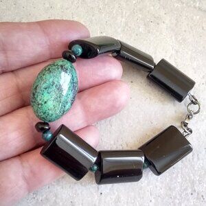 Bold Elegance: Black Jasper & Chrysocolla Heavy Bracelet! Wisdom & Protection