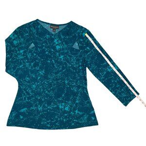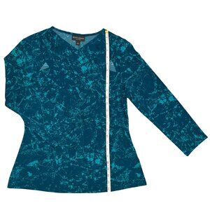Bold Elements Women's Teal Abstract Print Blouse Size L Workwear Chic Career Top