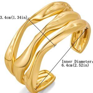 Features: This chunky gold cuff bracelet has a hammered finish and an irregular, multi-layered open cuff design. Its bold, wide silhouette adds a modern touch to any outfit. Crafted from durable alloy steel with a luxurious gold coating, it offers a shiny, high-fashion look—ideal for casual wear or dressing up.