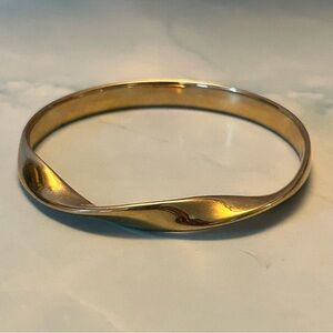 This elegant, bold gold tone twist bangle bracelet adds a touch of sophistication to any outfit. Perfect for any occasion.