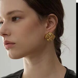 Make a statement with these stunning, chunky gold earrings featuring a sophisticated woven design. Crafted from durable stainless steel and coated with PVD real gold plating, they offer luxury and resilience in one beautiful accessory.