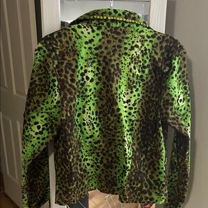 Stand out with this bold green and black leopard print blazer, perfect for adding a unique flair to your wardrobe.