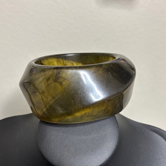 Bold Green and Black Resin Chunky Retro Vintage Bangle