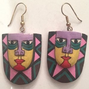 β¨One-of-a-kind and ready to party, these hand-painted wooden mask earrings bring BIG personality in a lightweight, wearable package! Inspired by the colors and energy of Mardi Gras, these unique beauties are bursting with charm, sass, and serious style. ππ½