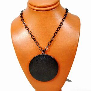 Bold Nordstrom Gunmetal Tone Heavy 2" Round Disc Pendant Necklace JW1537