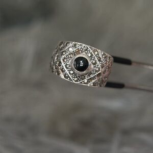 Sterling Silver 925 Onyx/Marcasites Ring.