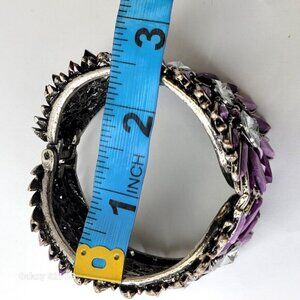 Bold Purple Cuff Bracelet Floral Motif Purple Bangle