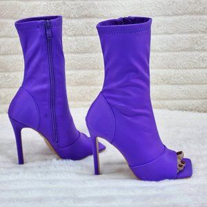Bold Purple Stretch Square Open Toe High Heel Ankle Boots