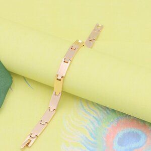 "Bold Rectangular Link Rose Gold Bracelet in Polished Finish, XPBL1143