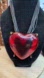 Striking red heart pendant This chic heart pendant necklace features a beautiful red and black marbled design, cradled in goldtone, hammered metal. On a 12 strand black cord with a lobster claw clasp.