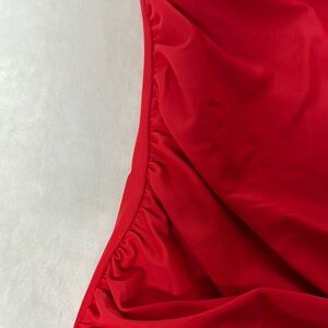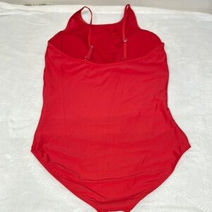 Dive into style with this striking red one-piece swimsuit, featuring a chic halter neckline and a sleek, form-fitting design. Crafted from a stretchy fabric blend, it ensures comfort and a timeless look for your next swim adventure. See all photos as they are part of description