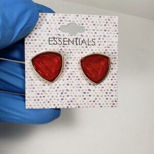 Make a bold statement with these eye-catching red triangle stud earrings. Featuring a vibrant, deep red gemstone-like finish set in a sleek gold-tone frame, these earrings combine modern geometric design with a playful pop of color. Perfect for adding flair to casual or dressy outfits alike.