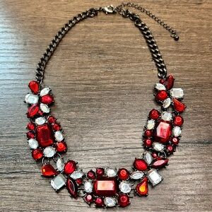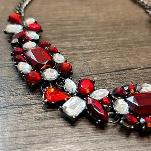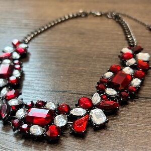 Bold Red and Silver Intricate Rhinestone Necklace
