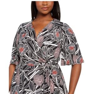Bold Robbie Bee Plus Mod Floral Print Textured Wrap Dress Size M (Fits Like 1X)