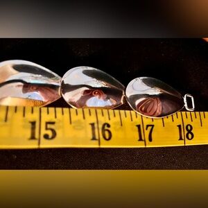 This stunning silver necklace adds a touch of elegance to any outfit. Perfect for any occasion. It is about 17 inches; maybe a bit more due to the clasp.