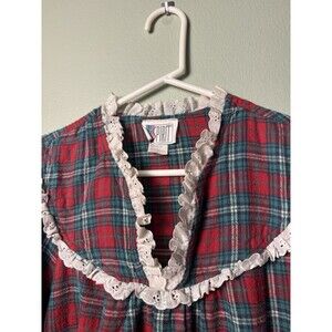 Bold Spirit Vintage 90s Tartan Plaid Cotton Flannel Nightgown Red Size L