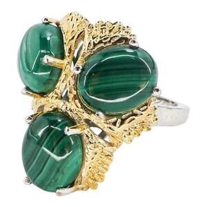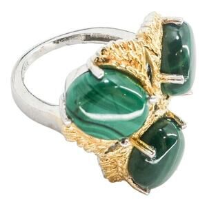 Bold Statement 3x Malachite Cabs Cocktail Ring STS Karis Size 8 Boho Luxe Retro