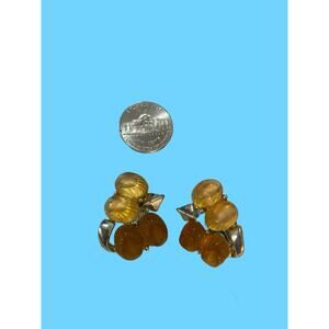 Bold Vintage Amber & Silvertone Clip-On Earrings