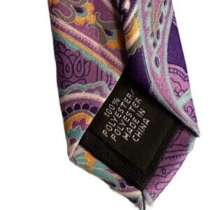 Make your outfit pop with this eye-catching vintage necktie featuring a rich purple base and an intricate paisley pattern. Swirls of turquoise, yellow, green, and pink create a vibrant tapestry of color, perfect for adding personality to formalwear or elevating a festive ensemble. The detailed design and saturated hues evoke retro charm with a modern twist—ideal for collectors, stylists, or anyone who loves a standout accessory.