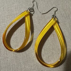 Make a statement with these gorgeous yellow loop drop earrings! Their modern, twisted teardrop shape creates a dynamic and eye-catching effect, perfect for adding a pop of color to any outfit.
