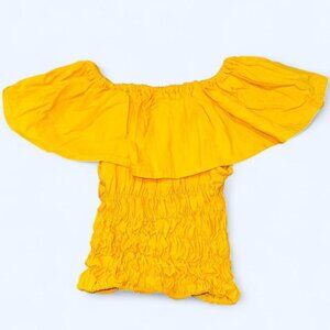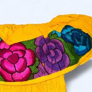 Bold yellow off-shoulder blouse with vibrant floral embroidery – fiesta ready!