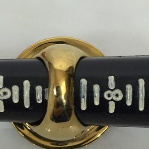 Orange and long, this ring has wear on the bottom and side of the band