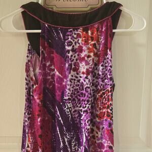 Bold and fun IZ Byer California sleeveless top 💜💖 vibrant animal/abstract print with contrast black trim — the ultimate Y2K comeback vibe 🪩✨