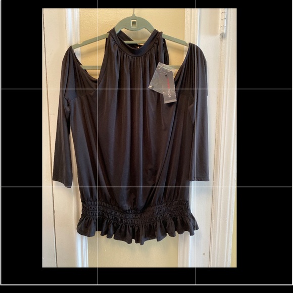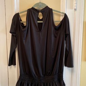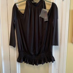 Black blouse with A sexy opening on the shoulders and part of the arm