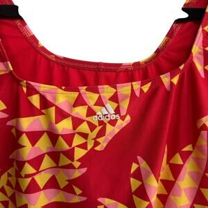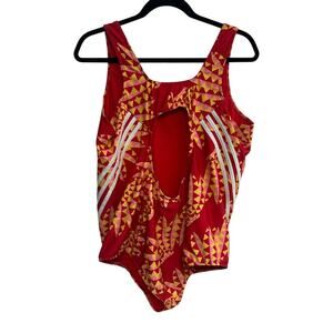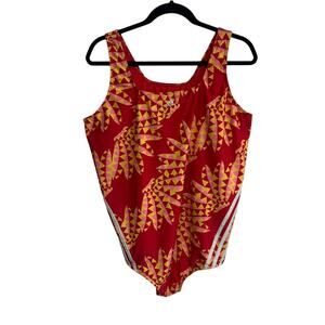 Bold retro Adidas one-piece swimsuit red yellow geometric sporty 3X