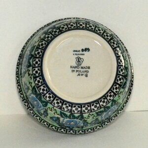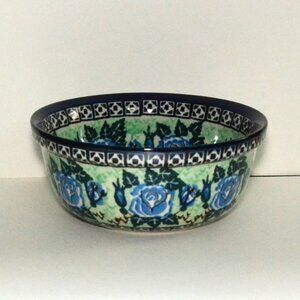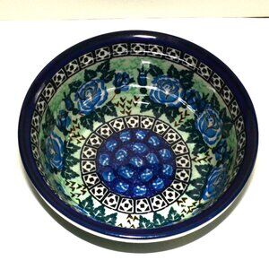 Bolesławiec Polish Pottery UNIKAT Bowl Hand Painted Blue Rose H. Szynska