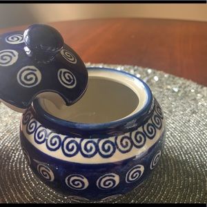 Boleslaweic Polish pottery handmade sugar bowl. Beautiful!❣️