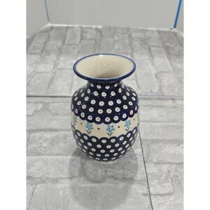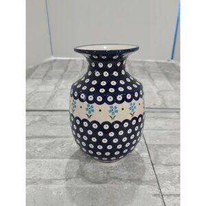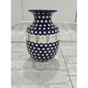 Boleslawiec Handmade Blue Eyed Peacock Pitcher Vase 7" Floral Cobalt