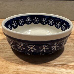 Boleslawiec Handmade SNOWFLAKES Cereal Bowl & Salad Plate Blue and White