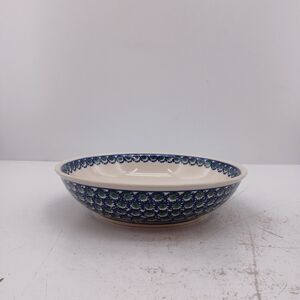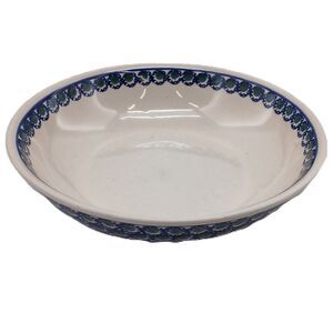 Boleslawiec Polish Pottery Blue Lattice With Green Dot Round Bowl 10.5" x 2.25"