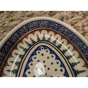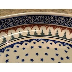 Boleslawiec Polish Pottery Christmas Tree Stars Oval Baking Dish 13.75 inx9.5in