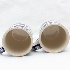 Boleslawiec Polish Pottery Coffee Mugs Matching Set Of 2 Peacock Pattern 12 oz