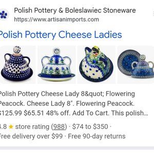 Boleslawiec Polish Pottery Dome Cheese Lady ~ No Plate ~ Poland European art