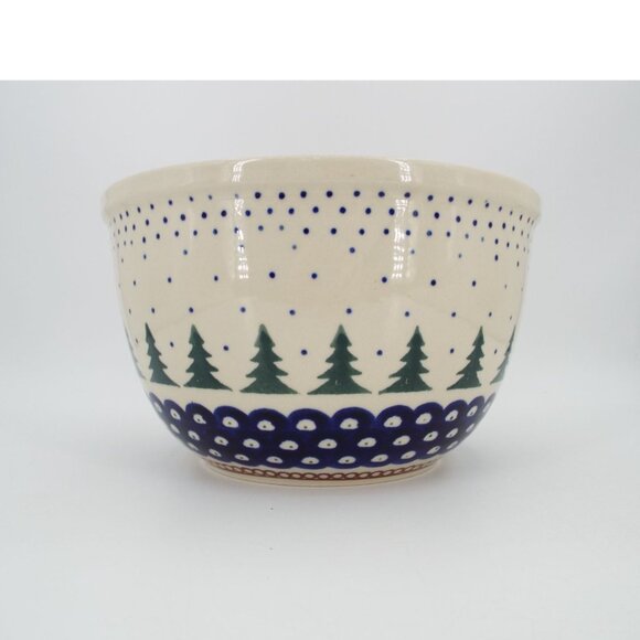 Boleslawiec Polish Pottery Evergreen Pine Tree Serving Bowl 5" high 8" diameter
