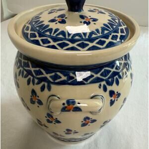 Boleslawiec Polish Pottery Medium Canister Blue Orange Hand Made