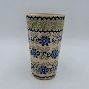 Boleslawiec Polish Pottery Mug Coffee Cup Latte Tall Floral Basket Weave Poland