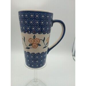 Boleslawiec Polish Pottery Tall Mug Yellow Flower Pattern - 14 oz To Rim
